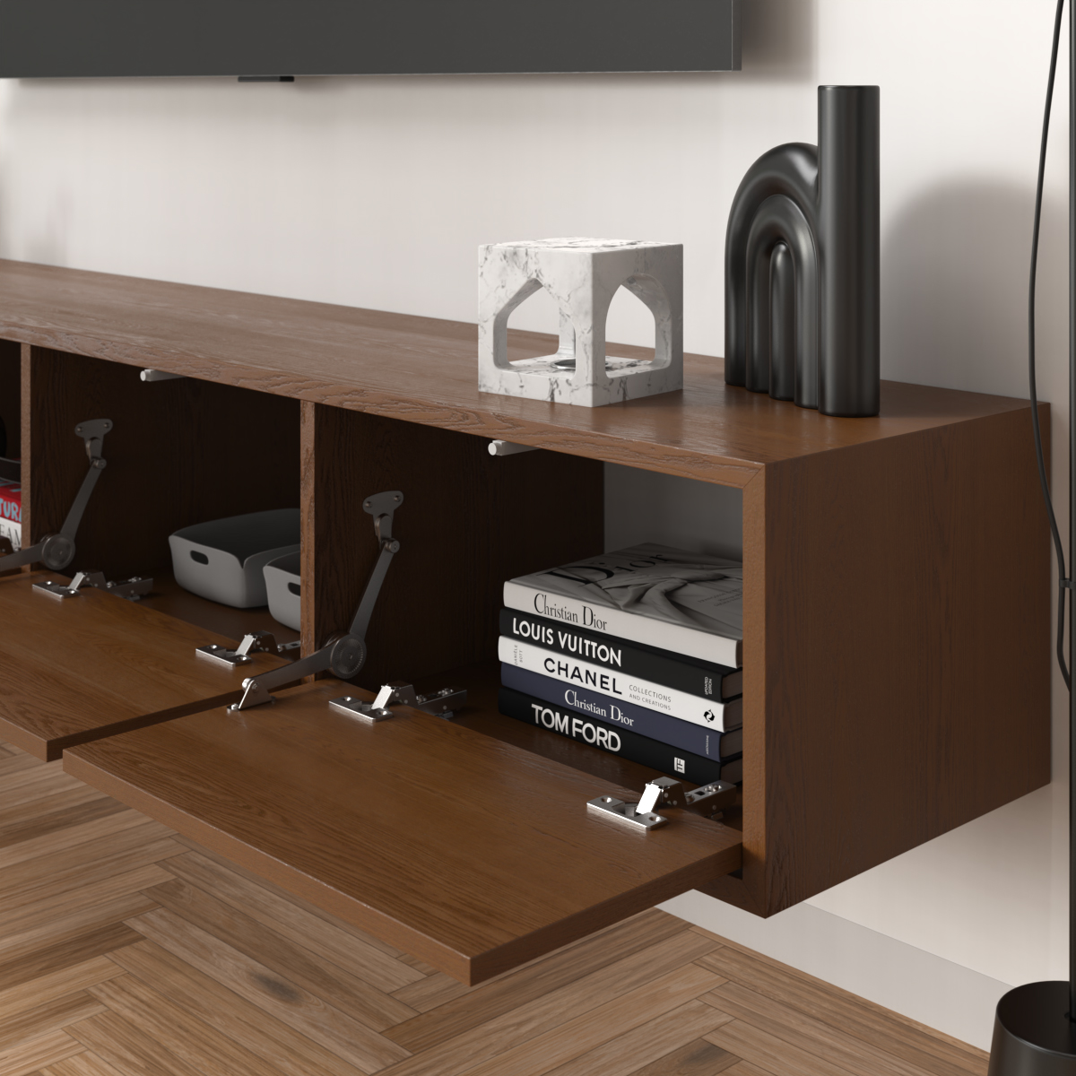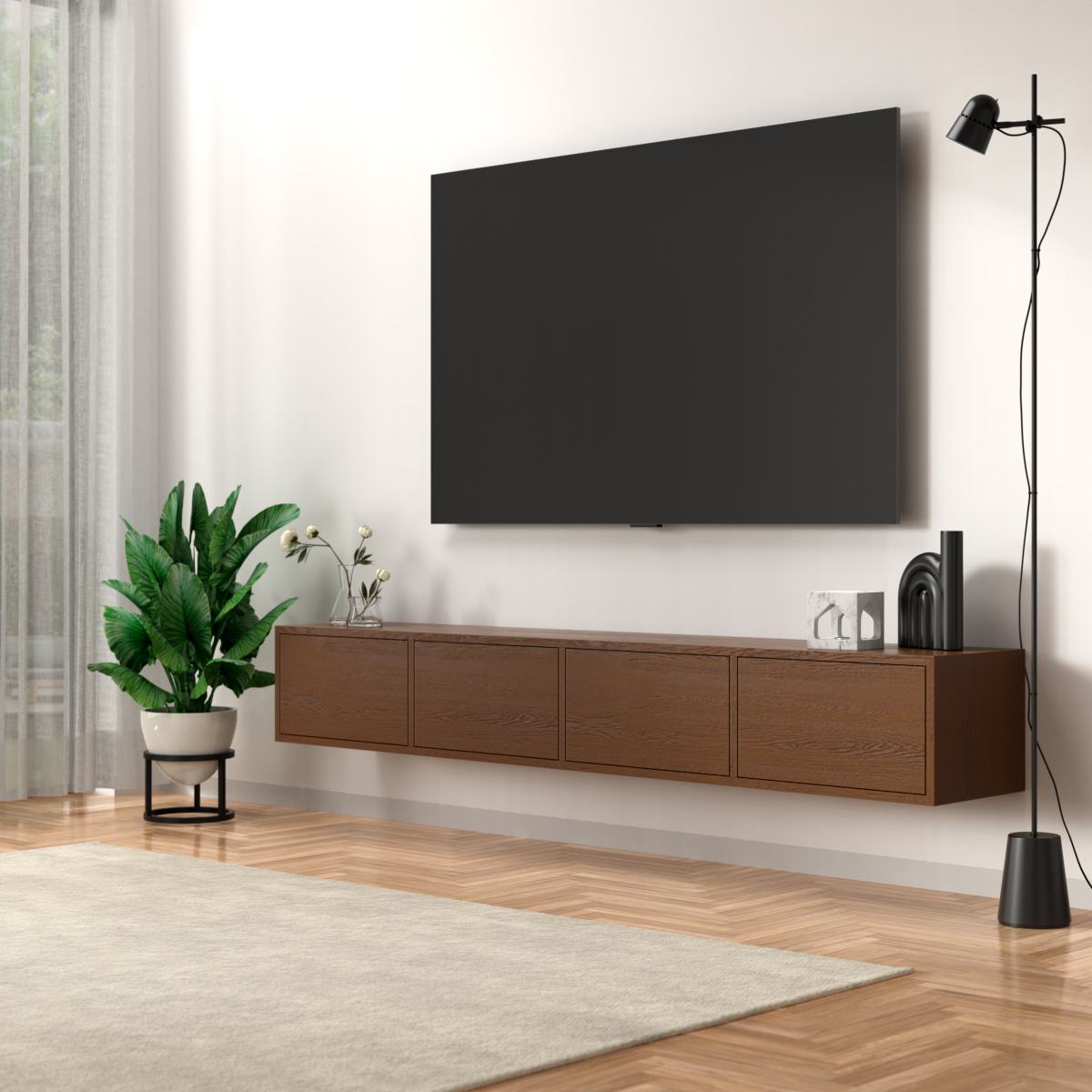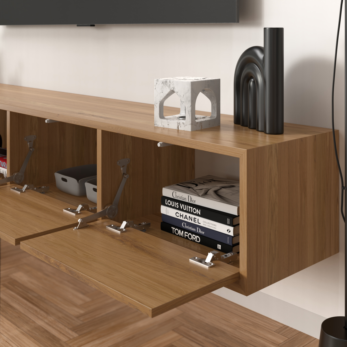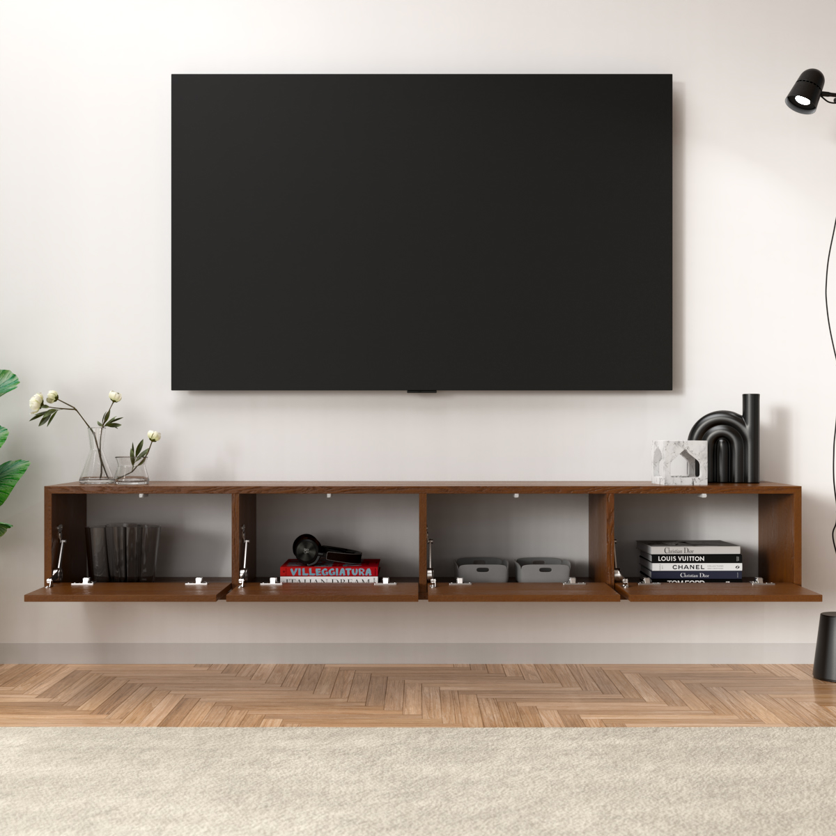 אם אתם חולי ניקיון שחשוב להם שיהיה אפשר להעביר סמרטוט מתחת לכל רהיט בקלות, אם אתם חולמים על מזנון אלגנטי במיוחד עם שפע של מקום לאחסון ולנוי, והאמת – גם אם אתם “סתם” חובבי עיצוב משובח – הנה האחד בשבילכם. מזנון דגם “דלויה” הוא מזנון צף מגיע עם 4 קלפות הנפתחות בטאץ (לחיצה) שיסדר לכם סלון מושלם מכל בחינה.