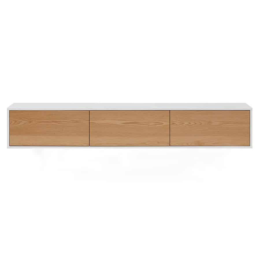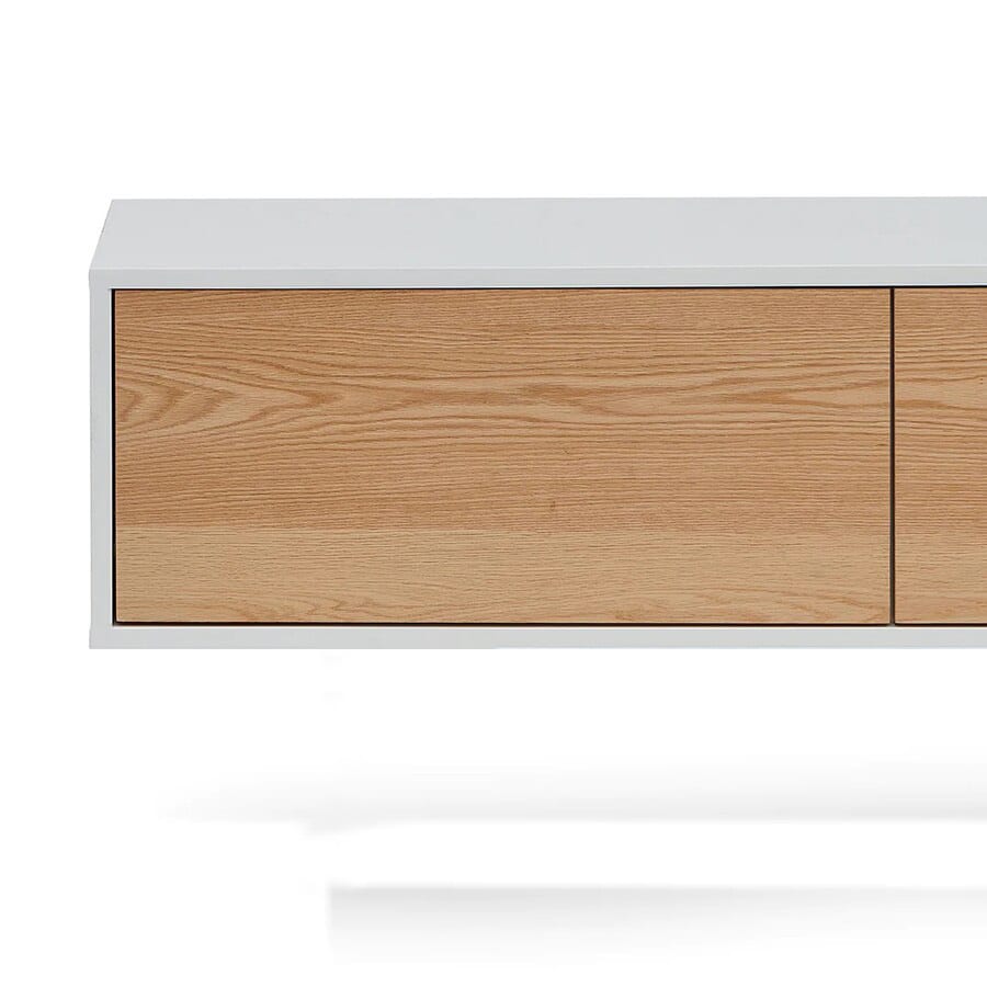 מצאתם את הפיס המושלם לסלון: מזנון צף לסלון דגם DEMBELE נורדי מודרני לסלון בגוון לבן בשילוב פורניר אלון טבעי. השילוב בין הצבעים הופכים את המזנון להיסטרי. מזנון תלוי “דמבלה” מגיע עם 3-4 קלפות הנפתחות באמצעות מנגנון טאץ (לחיצה).
