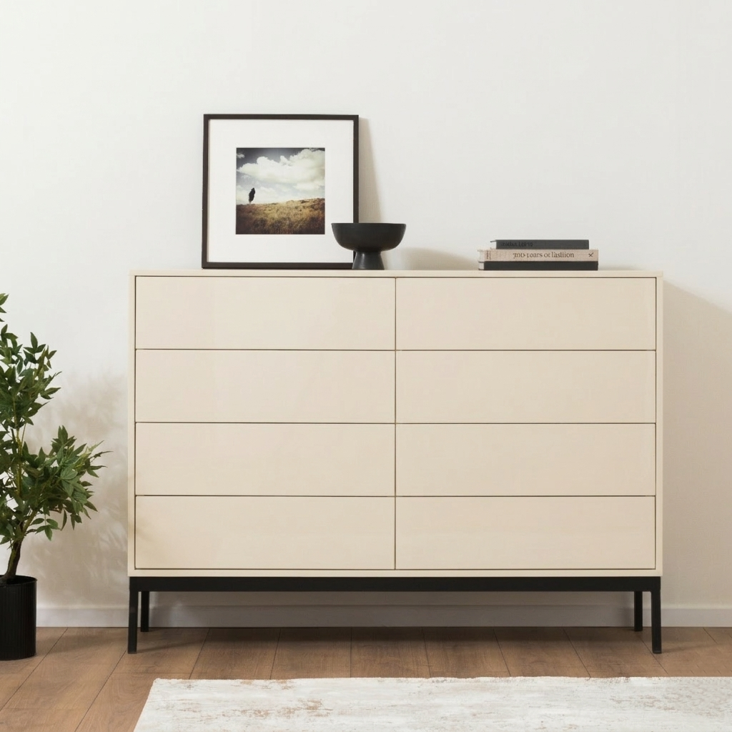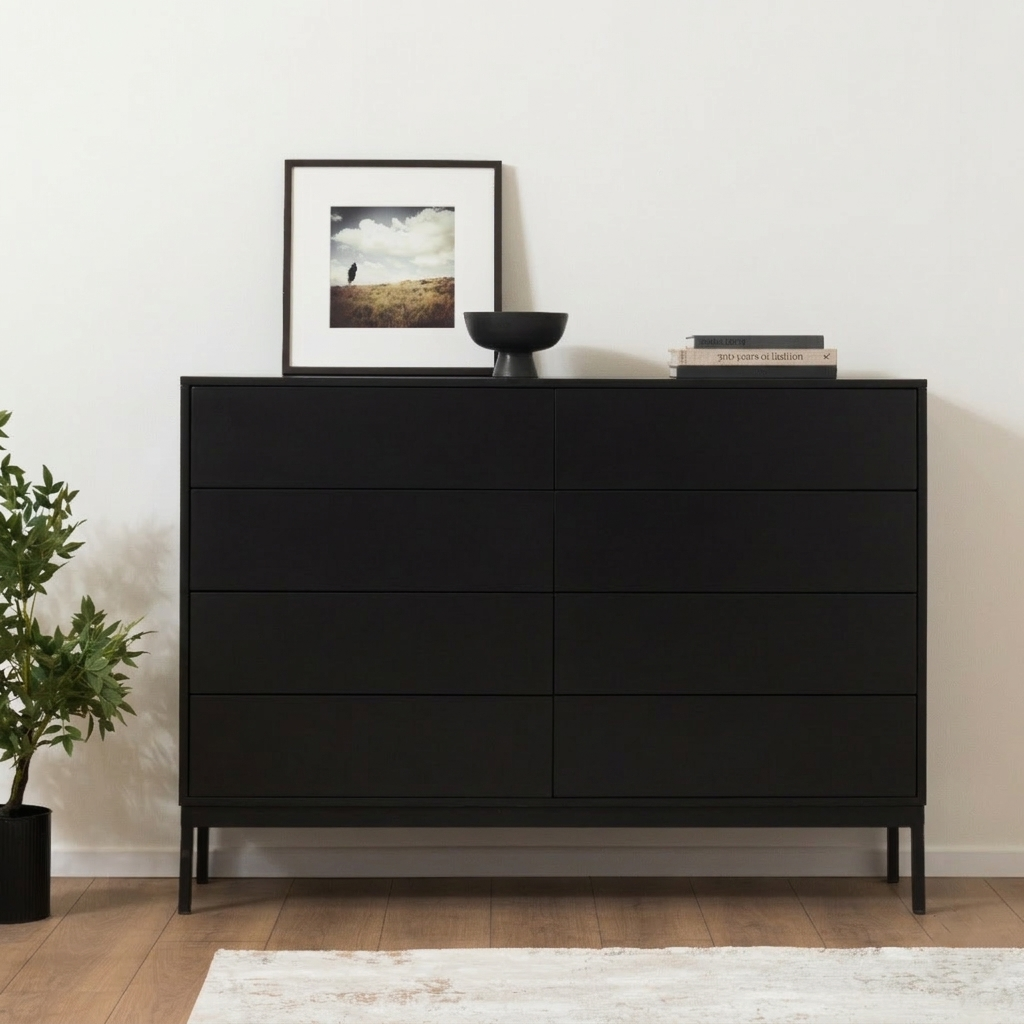 היא יצירת אומנות עיצובית המשלבת יופי ופרקטיקות בצורה מושלמת. עם 8 מגירות פונקציונליות, קומודה מדגם HERMOSO מספקת מקום אחסון נרחב ומסודר ושלא נדבר על העיצוב המהמם שלה. הגוונים מעניקים לקומודה מראה אלגנטי וטבעי. הרגלים עם המסגרת בצבע שחור מוסיף רמה של אלגנטיות למראה הקומודה. HERMOSO היא פריט חלומי לכל מי שאוהב עיצוב!