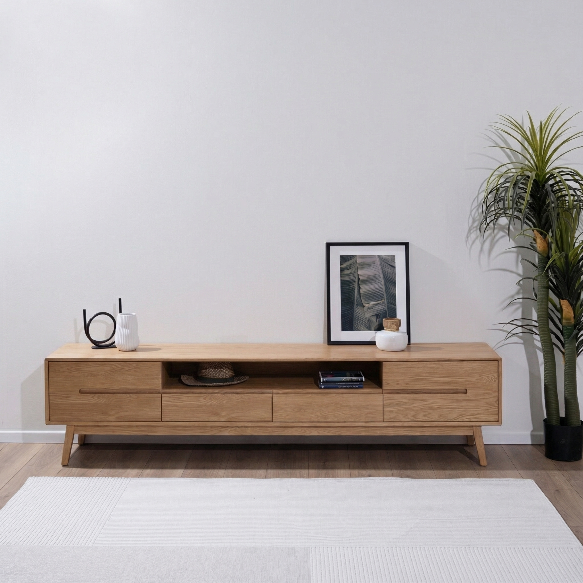 פשוט, מדויק ומרהיב. הכירו את מזנון דגם LAMELA שלנו!  המזנון מגיע עם 4 מגירות אחסון, ופתח אמצעי כדי שתוכלו לשים את השלטים שלכם. כל המזנון מגיע בגוון עץ אגוז / אלון טבעי כולל רגלי המזנון.