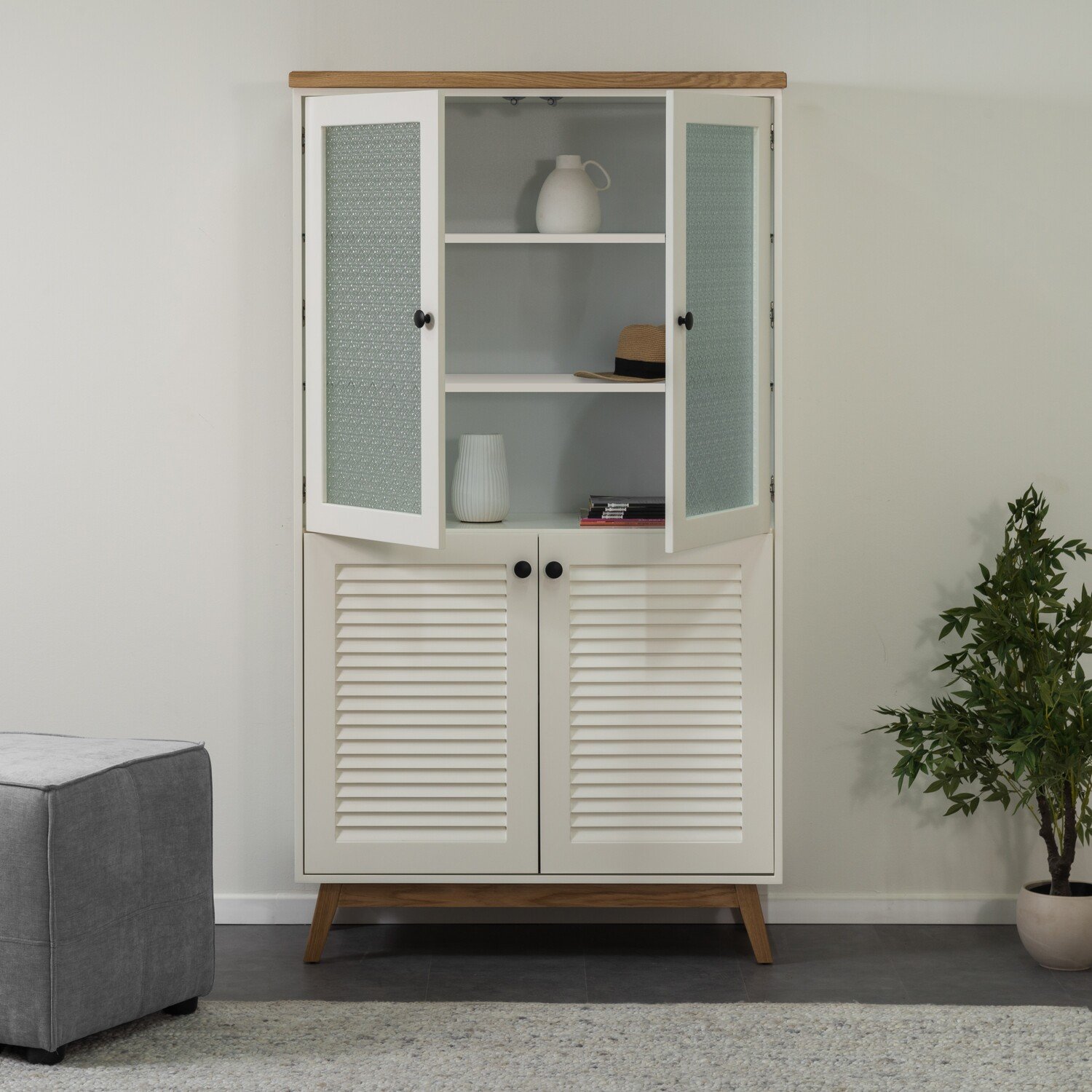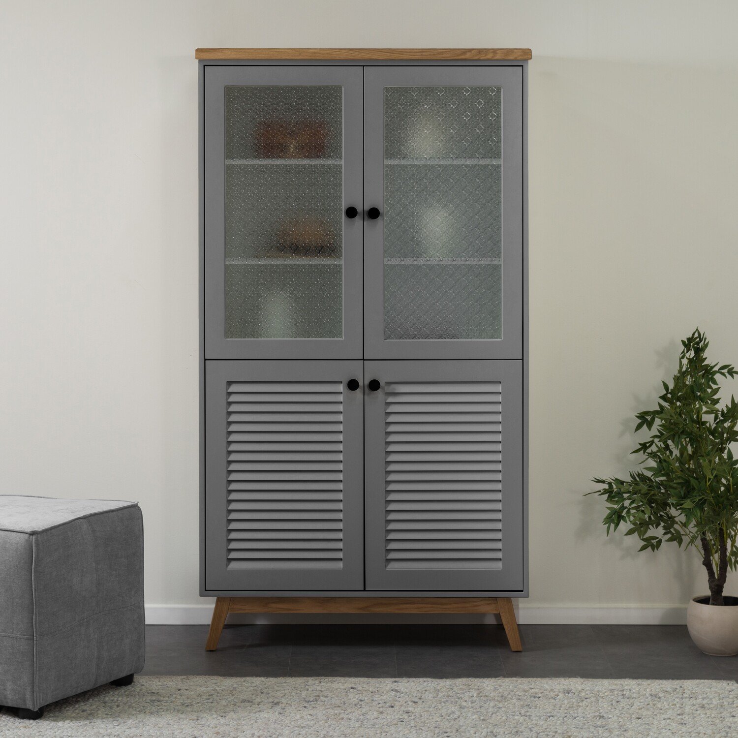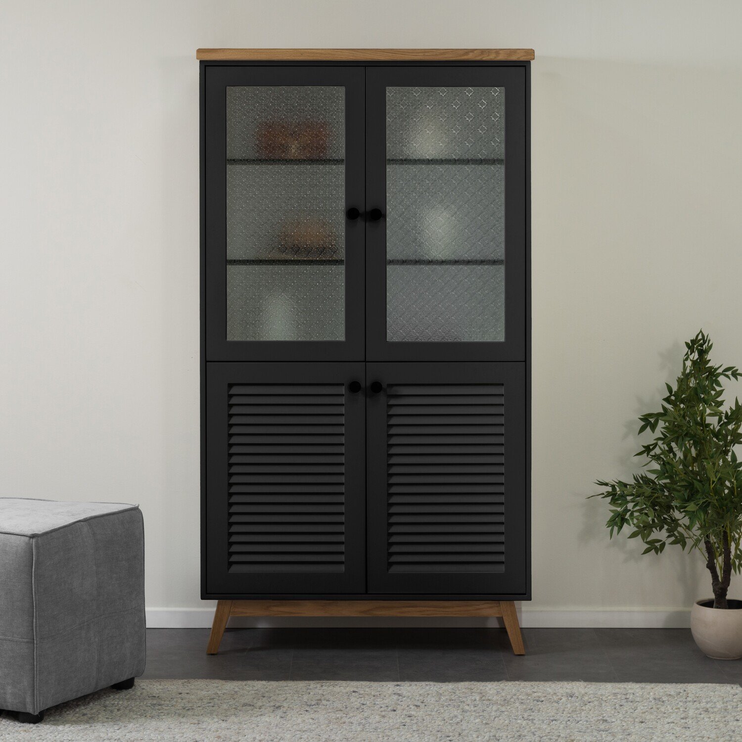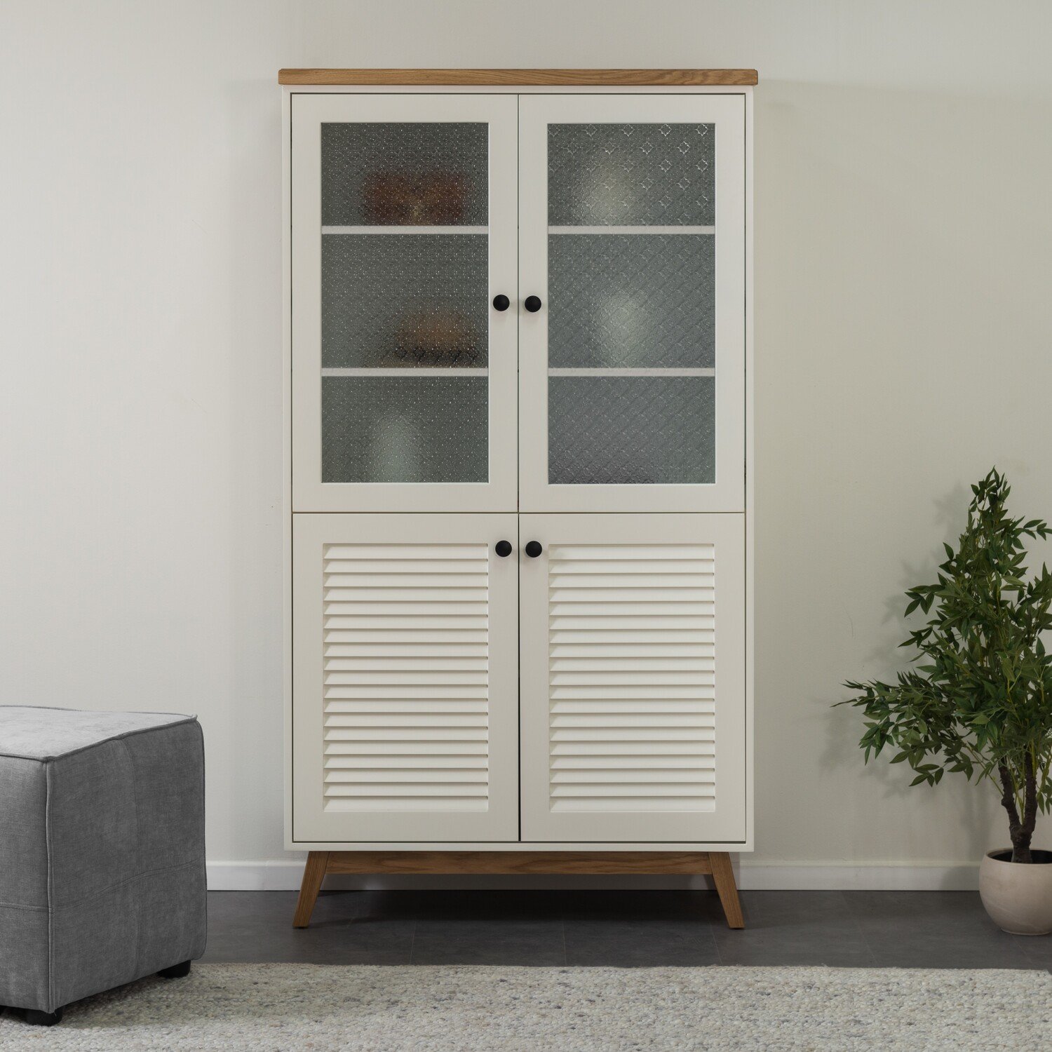 הויטרינה הכפרית הזו שגם תתן לכם טאץ’ עיצובי מהמם וגם מקום אחסון נוח לכל הדברים החשובים שיש לכם בבית. דגם LUNIN לוקח אותנו לכפרים הסקנדינביים וגורם לתחושת חמימות ביתית כמו שרק עיצובים כפריים יכולים לייצר. מגיעה עם 4 דלתות – 2 דלתות עליונות מזכוכית סבתא ו2 דלתות תחתונות עם תריס ומדפים באמצע, כל היופי הזה בשילוב עץ אלון שמוסיפים תחכום ייחודי לויטרינה כולה.