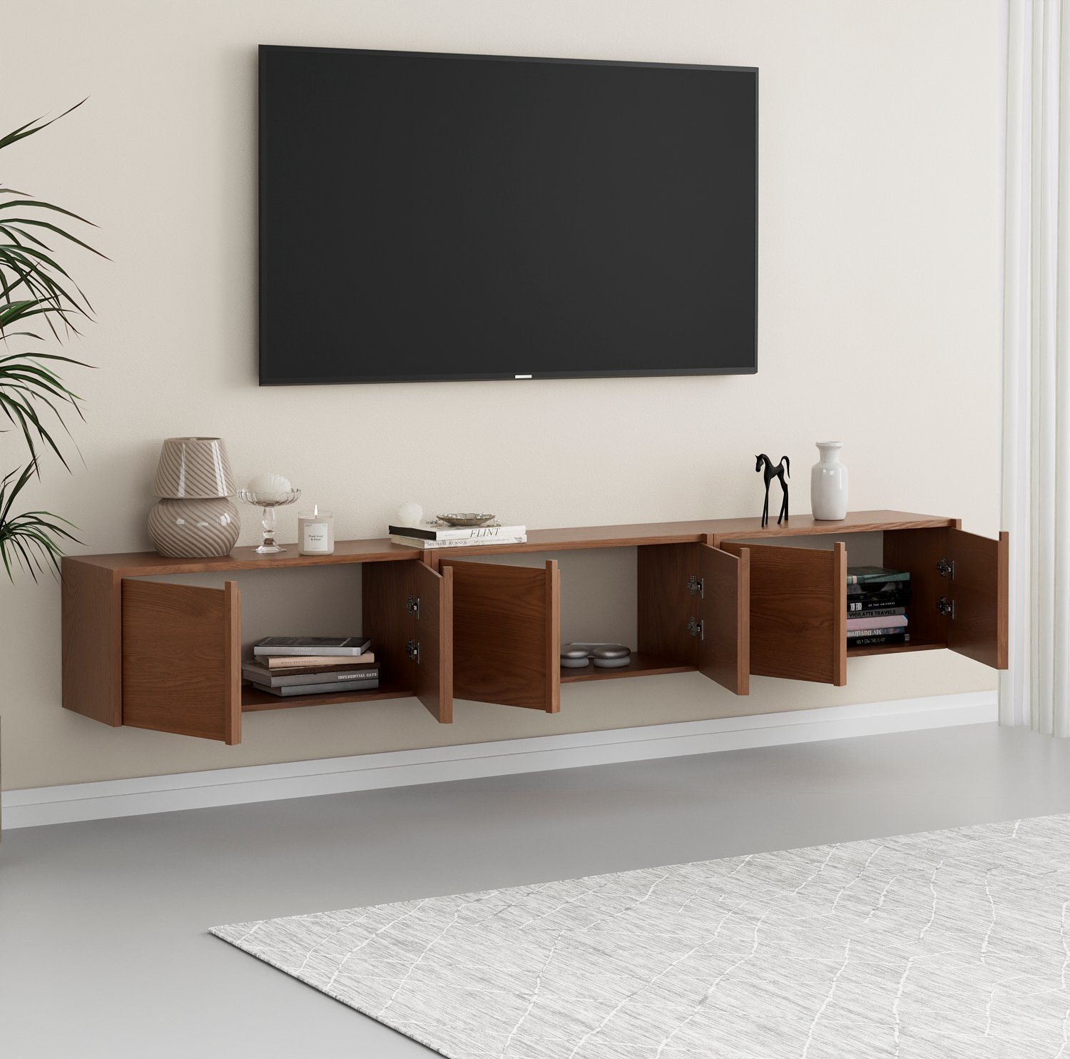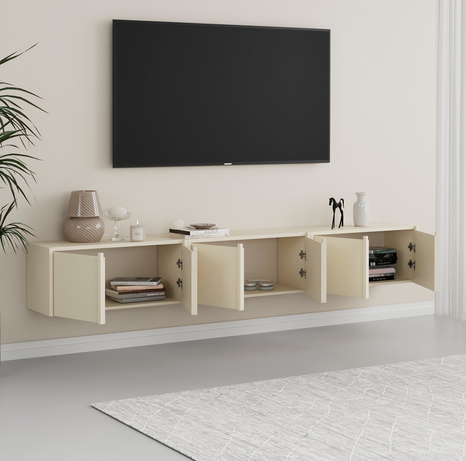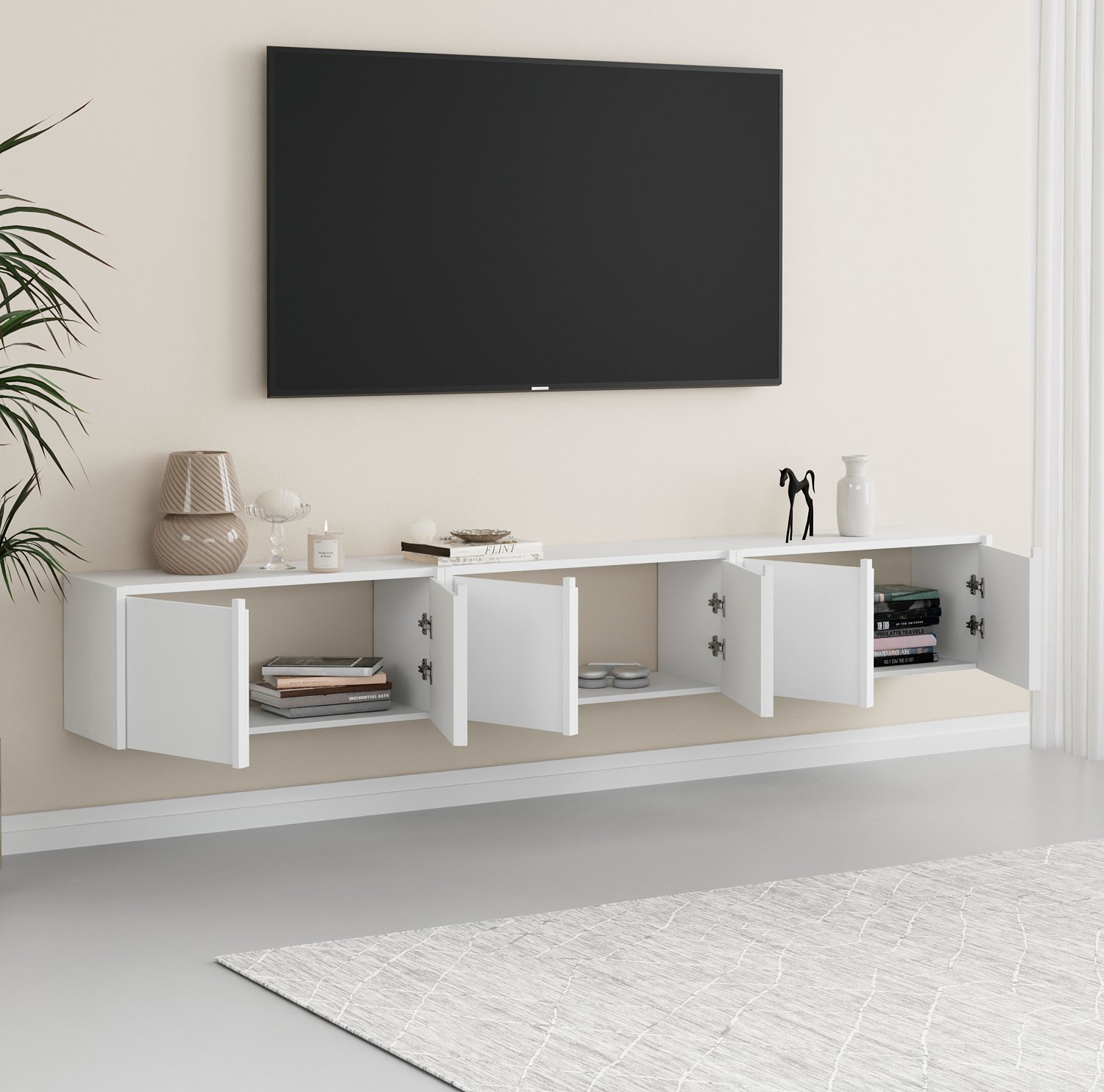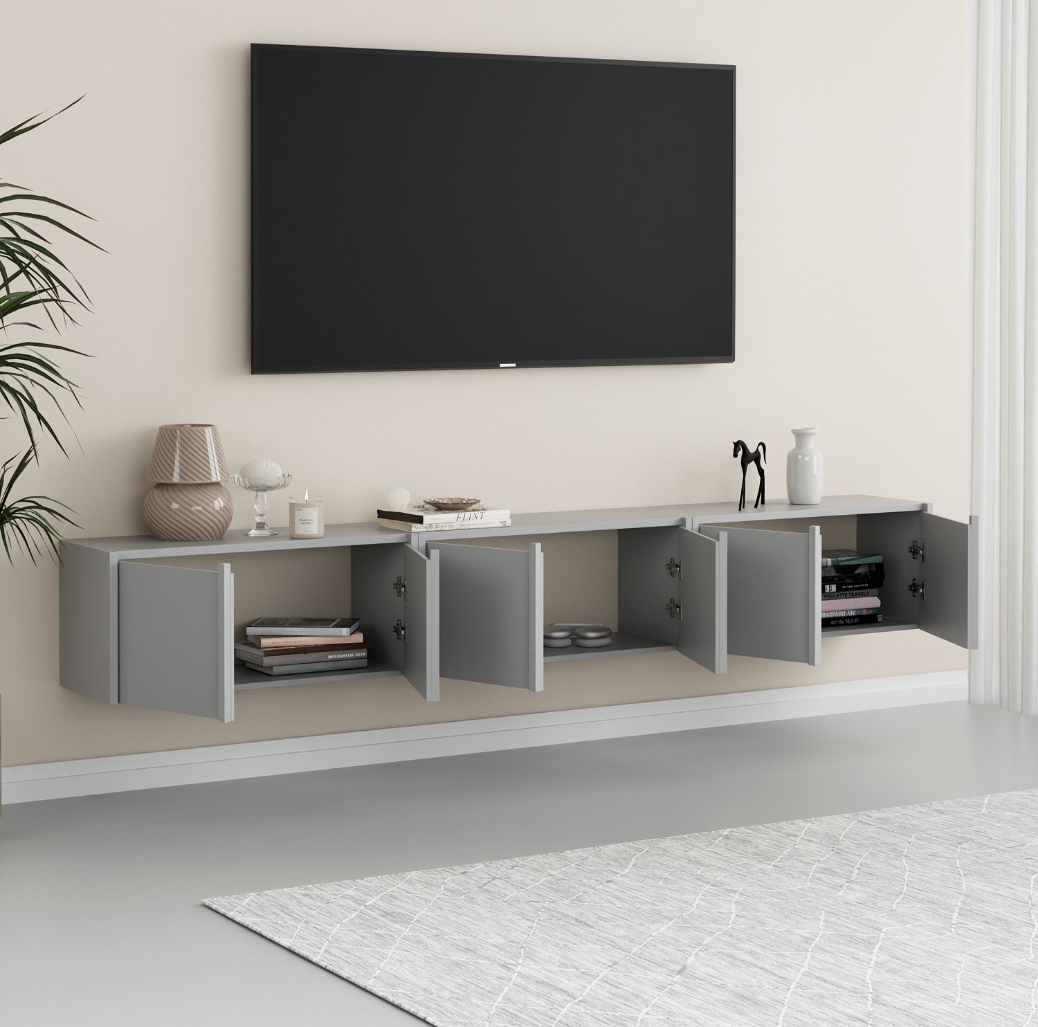 שדרגו את הסלון עם מזנון יוקרתי המשלב בין אסתטיקה מינימליסטית לפתרונות אחסון חכמים. המזנון צף מתאפיין בקווים נקיים, חלוקה גיאומטרית מדויקת וגימור מוקפד, המעניקים לסלון מראה מתוחכם ומסודר. מושלם כרהיט מרכזי מתחת למסך הטלוויזיה או כאלמנט עיצובי משלים בבית.