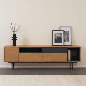 הסטייל הנורדי לא משאיר אותנו אדישים. מזנון לסלון דגם MONIKA מעוטר עם חריצים קוויים ומשווים לו מראה קסום ומהפנט. למזנון יש 2 דלתות נפתחות בצדדים ו2 מגירות אמצעיות עם פתיחת טאץ’. ואם זה לא מספיק לכם, שילבנו גם רגלי ברזל בגוון שחור כדי שממש לא תוכלו כבר לעמוד על הרגליים מרוב היופי 🙂