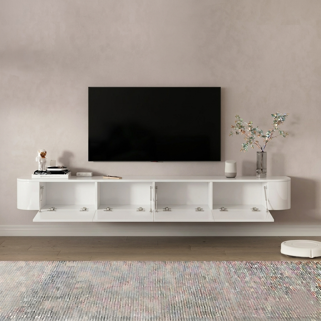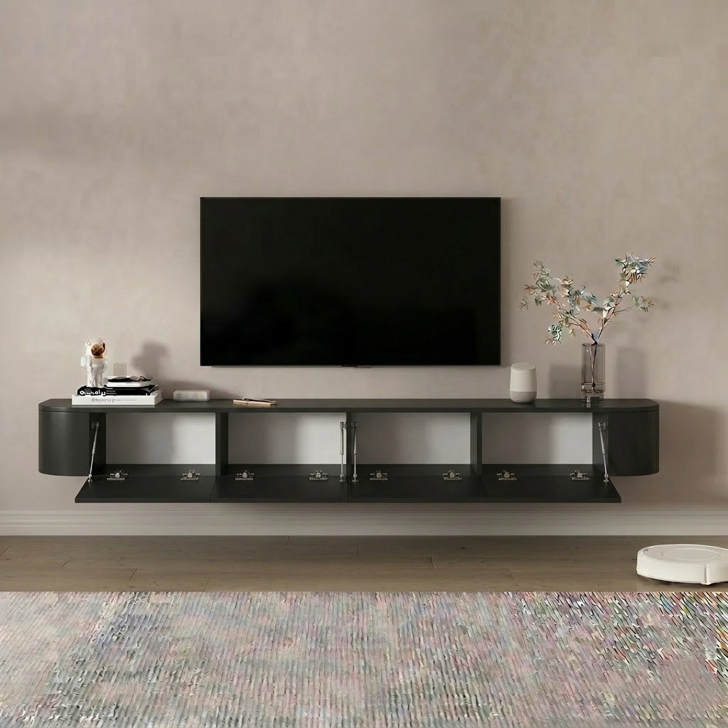 שדרגו את הסלון שלכם עם מזנון צף דגם MOSKONI המשלב תחכום עיצובי ופרקטיקה יומיומית. המזנון מגיע עם 4 קלפות עם פינות מעוגלות המעניקות לחלל תחושה זורמת ונינוחה יותר ממזנונים מרובעים סטנדרטיים. העיצוב המרחף לא רק נראה נהדר, אלא גם הופך את ניקיון הבית לקל מתמיד – מושלם לשימוש עם שואב אבק רובוטי.