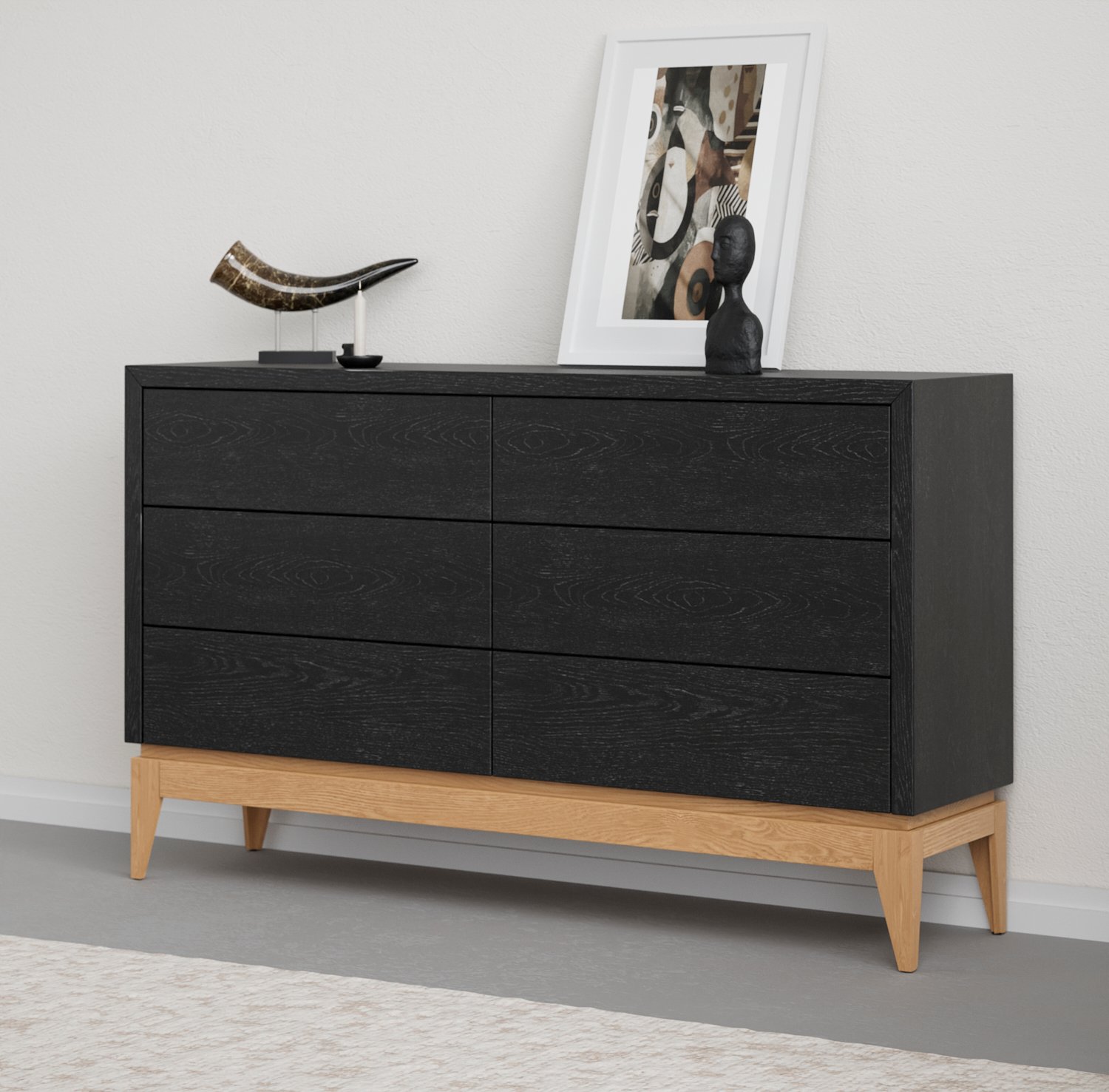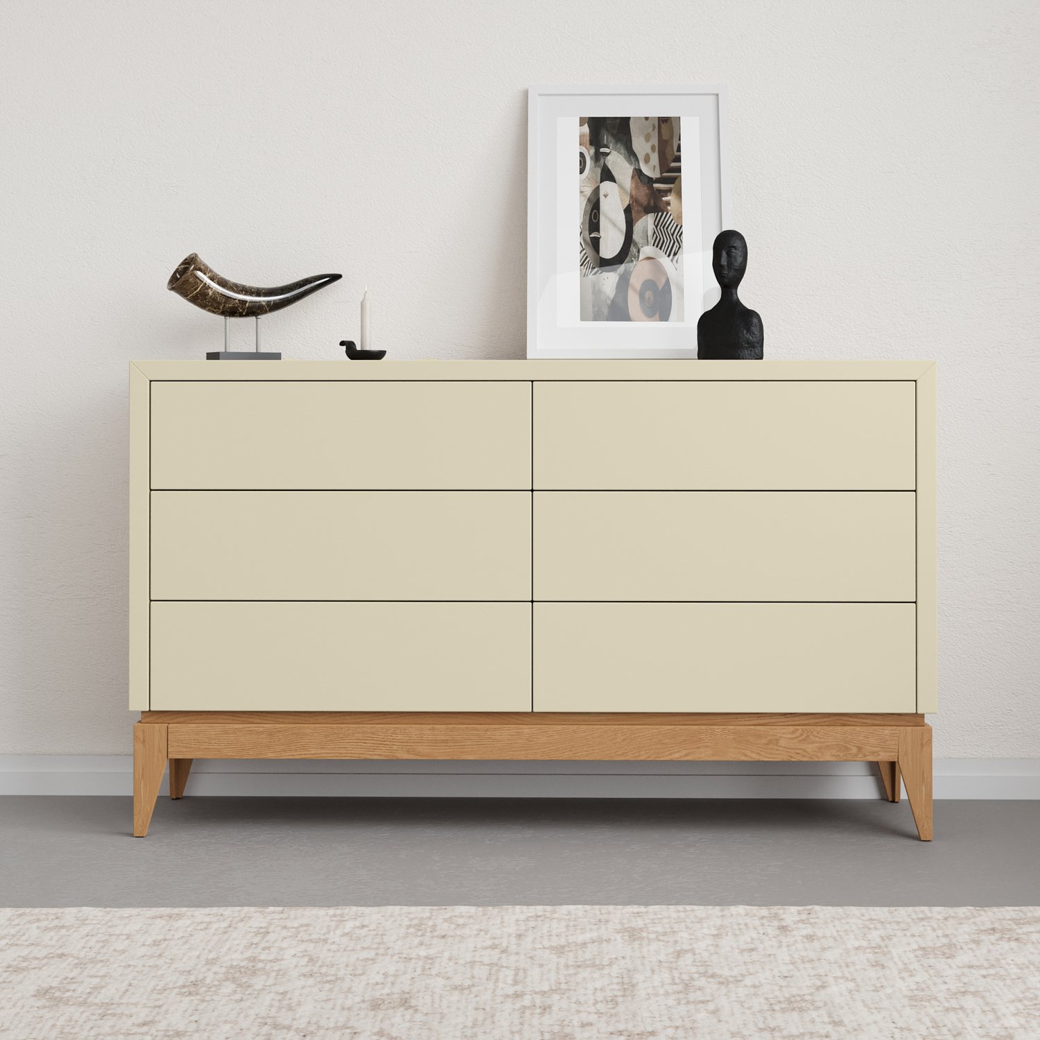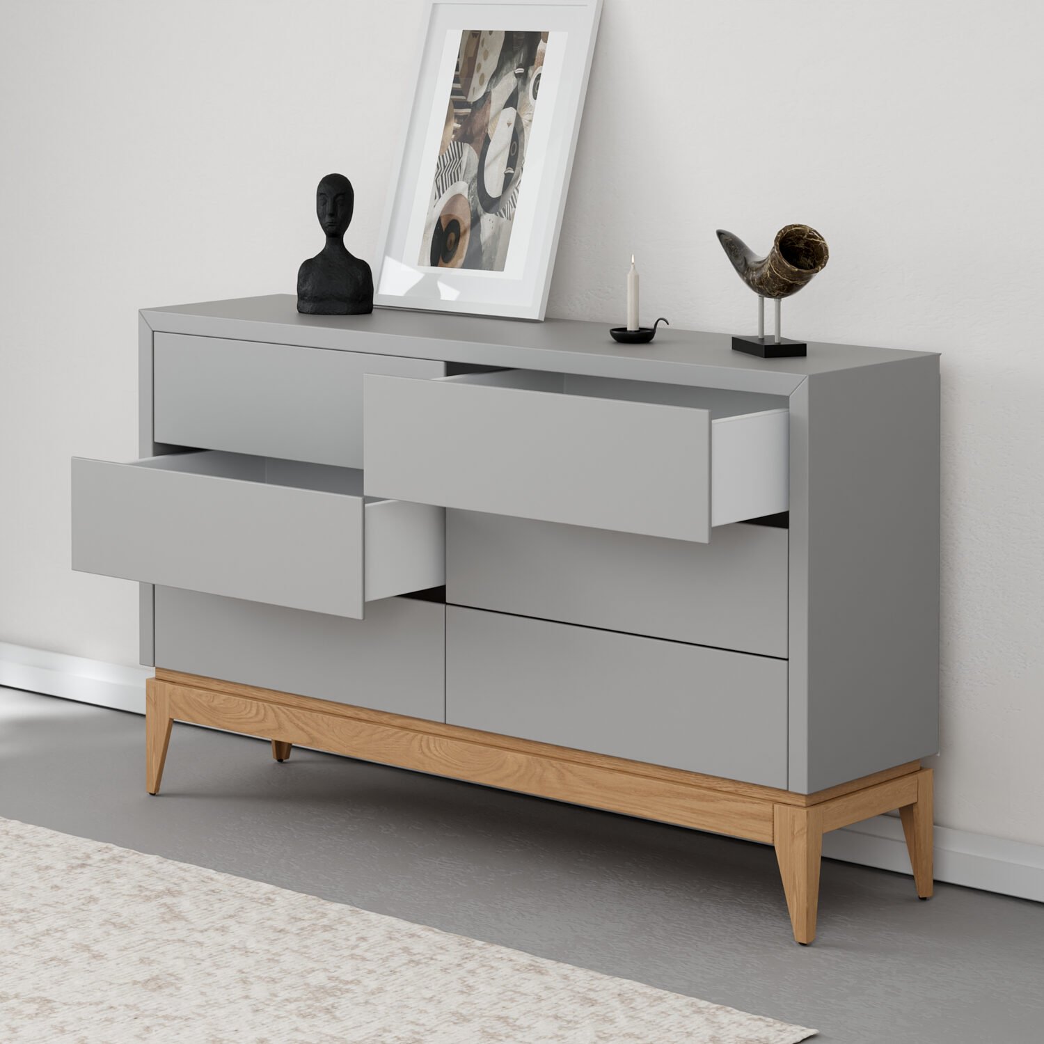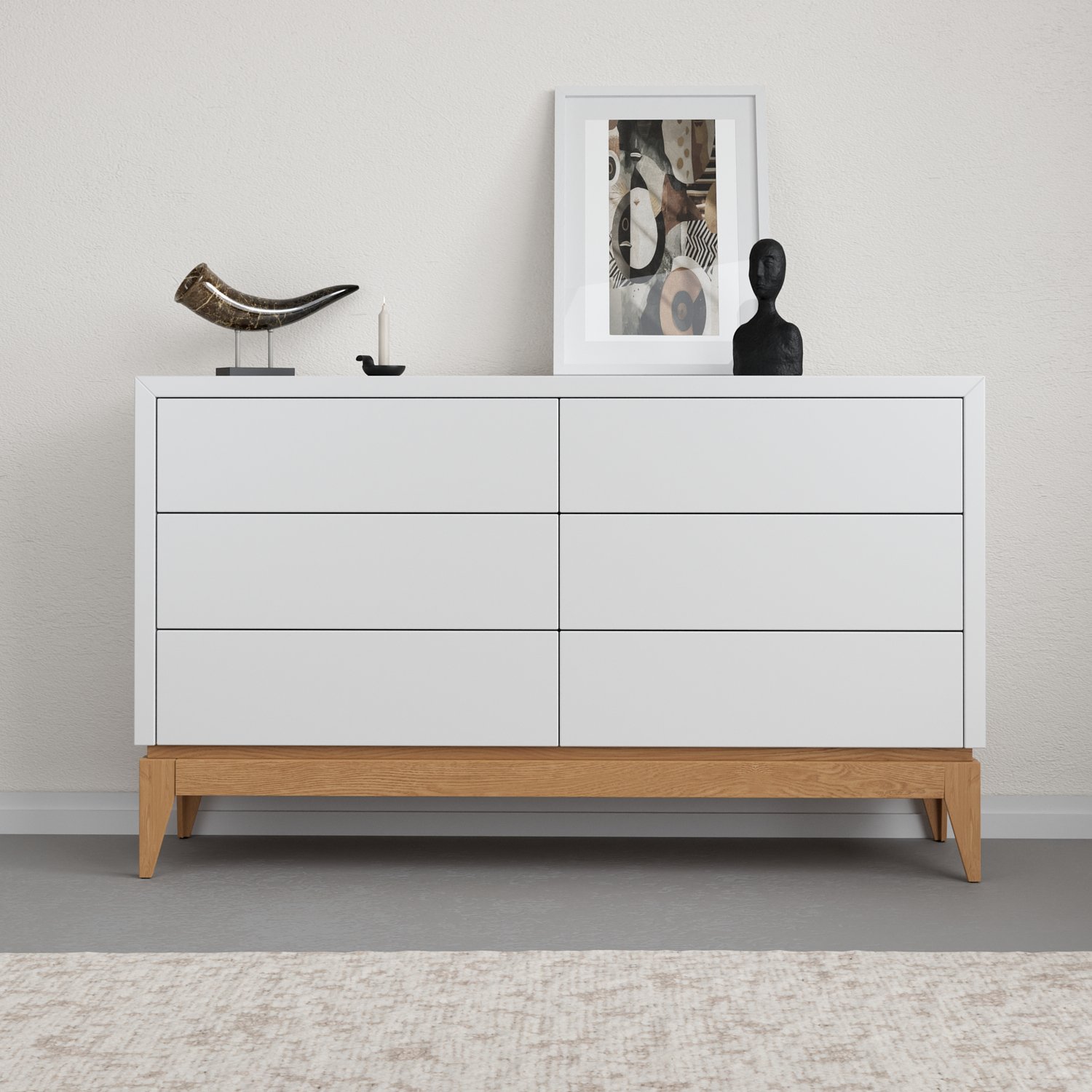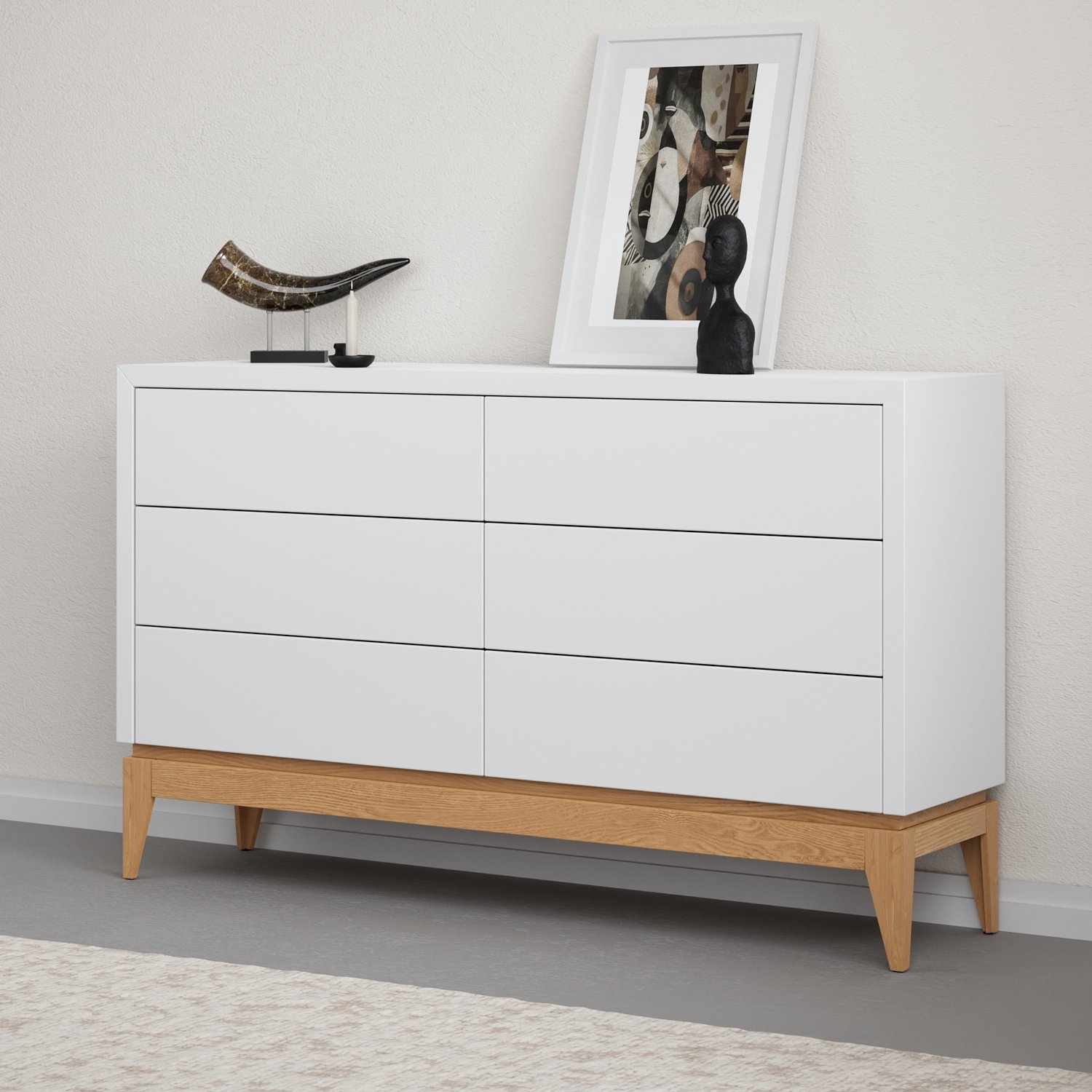 הכניסו סדר וסטייל לחלל שלכם עם קומודה מרשימה בעלת 6 מגירות מרווחות, בעיצוב מינימליסטי ונקי בגוונים שונים עם רגלי עץ אלון מלא. השילוב בין המראה הסקנדינבי האלגנטי לפרקטיות חכמה יוצר רהיט מושלם לחדר שינה, סלון או לכניסה לבית. הקומודה כוללת 6 מגירות רחבות עם פתיחה חלקה ונוחה טאץ’ (לחיצה), ומאפשרת אחסון קל ונגיש לבגדים, אביזרים, מסמכים ועוד – בלי לוותר על עיצוב מוקפד.