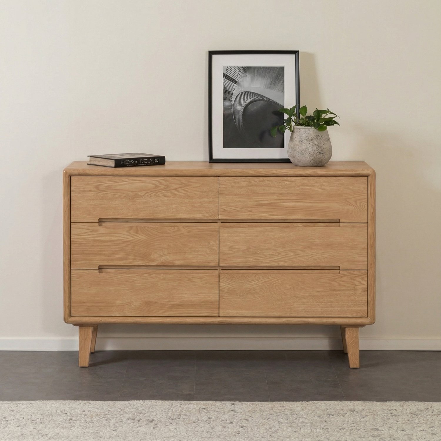 תודו שמזמן לא ראיתם דבר יפה כזה! שידת דגם SANE היא השילוב המושלם בין חדשנות לכפריות. המראה שלה מצד אחד מאוד מזכיר את הסיקסטיז ומצד שני ברור לכולם שזה עכשווי בקטע אחר! היופי שלה זה העיצוב המעוגל בצדדים, השילוב עם עץ האלון המלא בגוון אגוז שאין מה להתווכח עם היופי שלו. הקומודה מגיעה עם 6 מגירות אחסון עם ידיות אינטגרליות וטריקה שקטה.