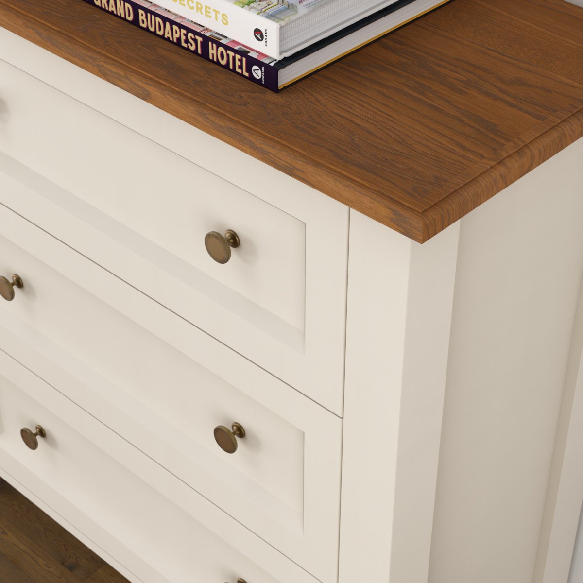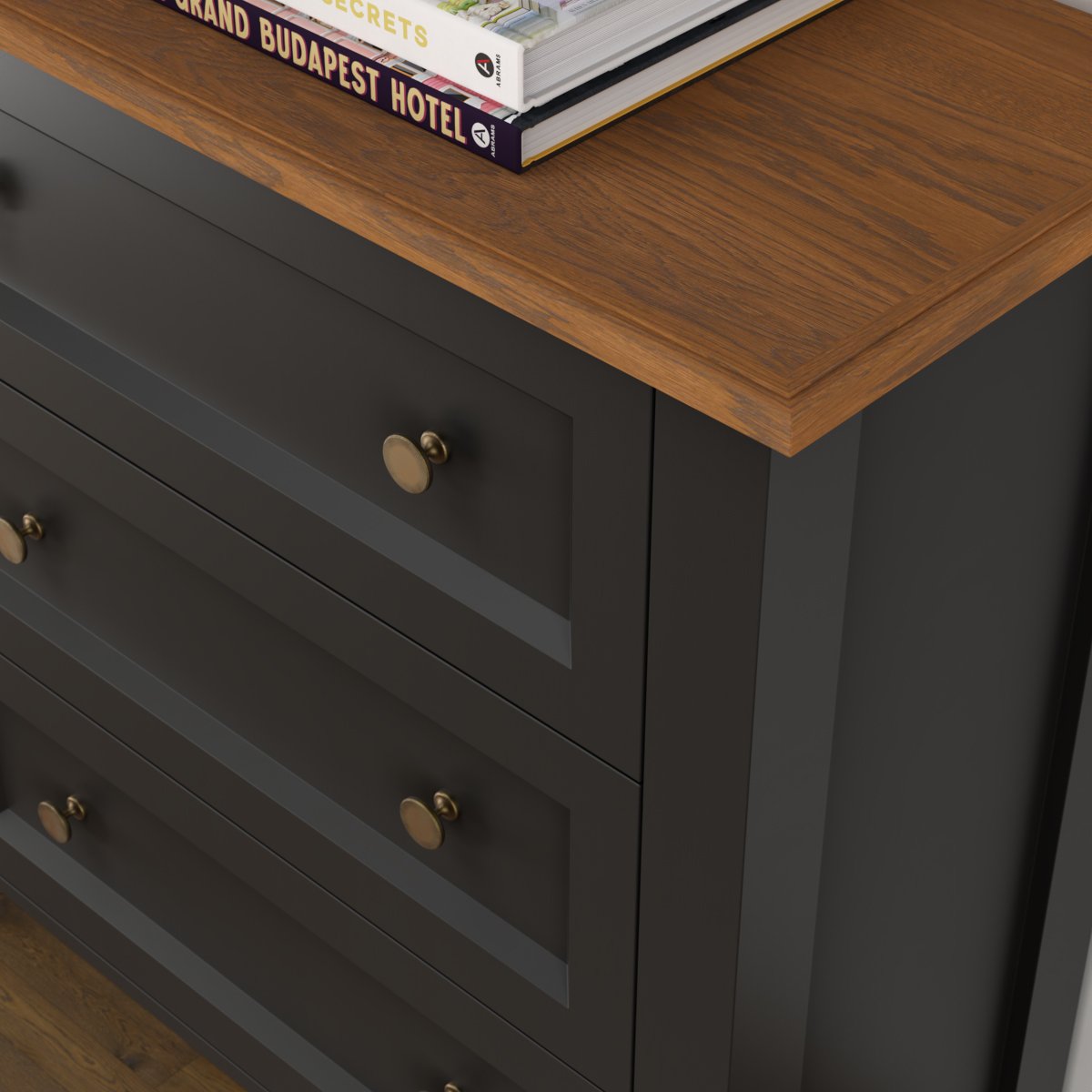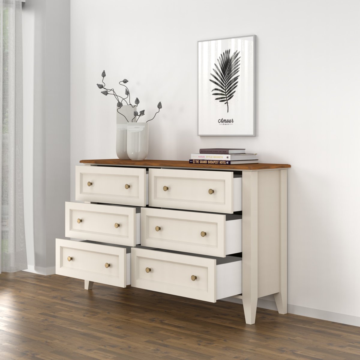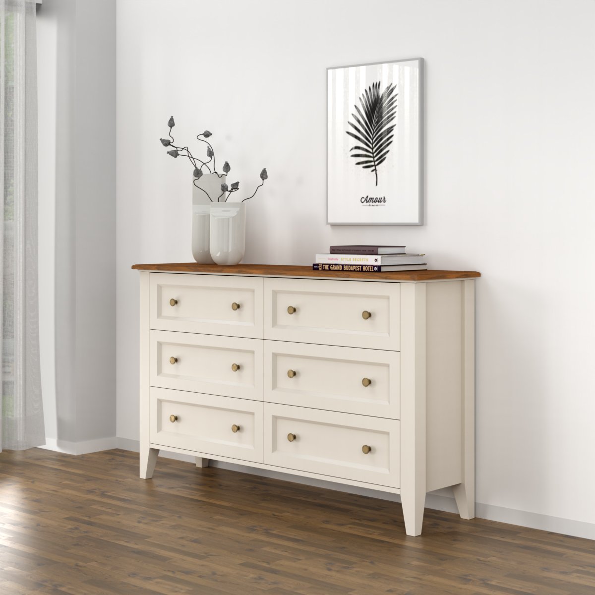 אל תופתעו אם תרצו להחליף את כל העיצוב בבית בהתאם לקומודה היסטרית הזו! שידה כפרית דגם SORLOT עשויה מעץ תעשייתי צבוע בתנור אשר משרה אווירה חמה וכפרית. השידה מגיעה עם 6 מגירות אחסון פונקציונליות עם ידיות נחושת עם טריקה שקטה. ומעל כל היופי הזה יש פלטה עץ בגוון אגוז.