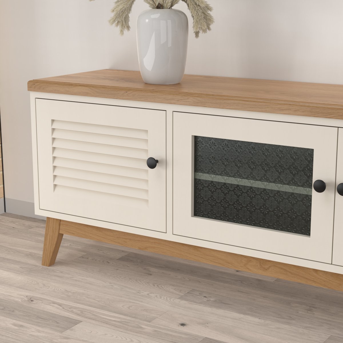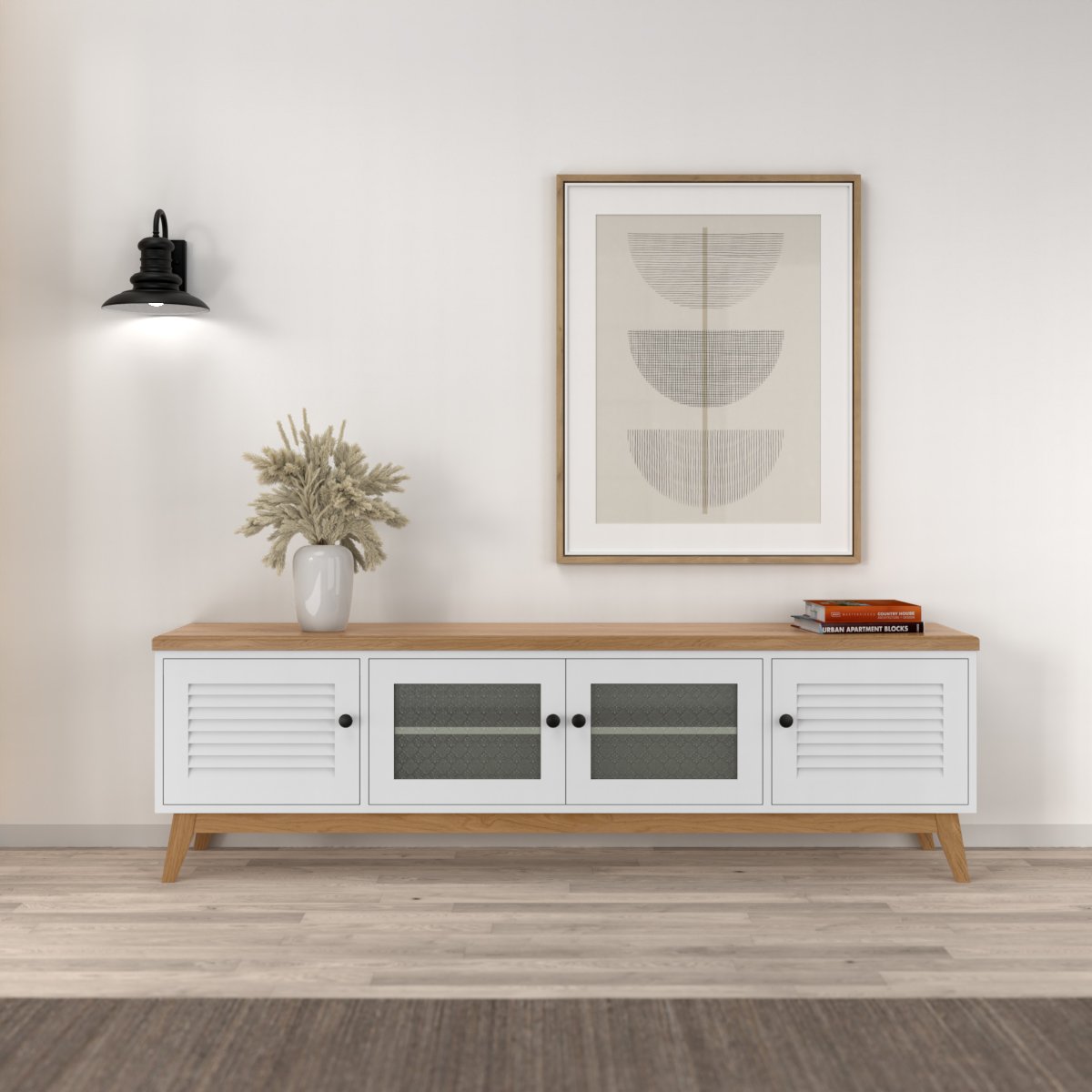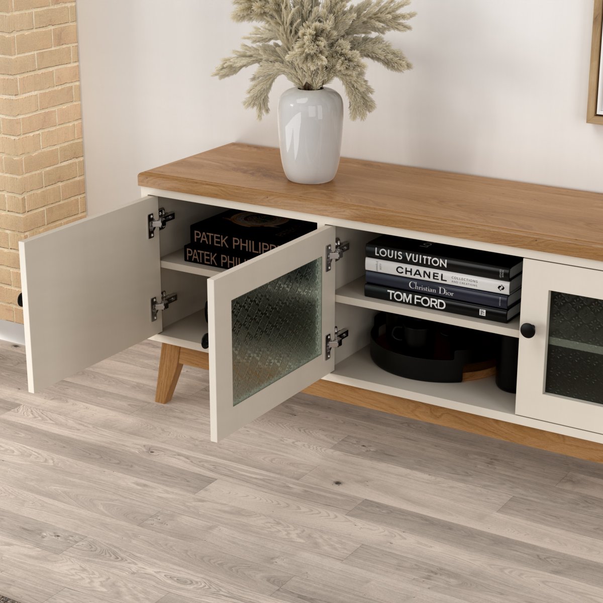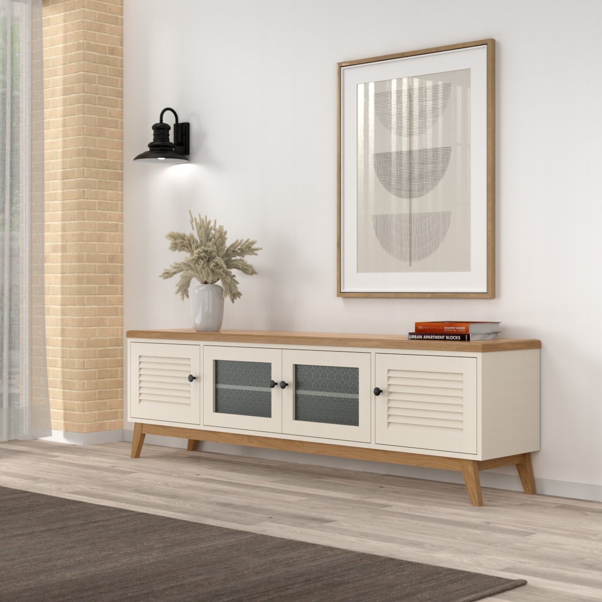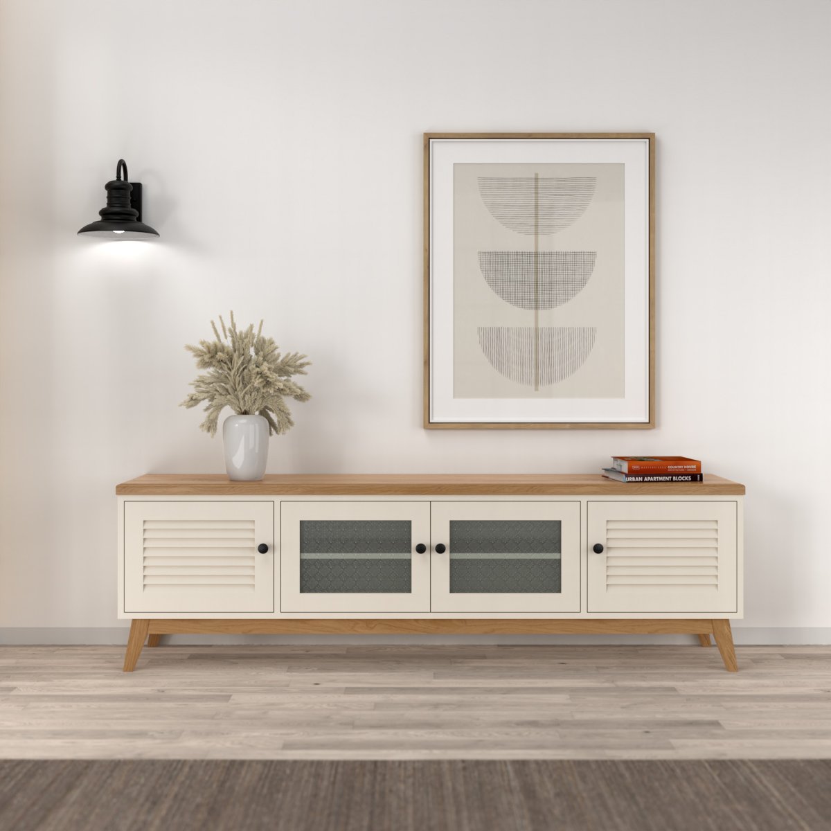 אנחנו יודעים שאתם מתים על כפרי ולכן הבאנו במיוחד עבורכם את המזנון לסלון המהמם הזה! המזנון משלב באופן מושלם את הצבעים הכי טרנדיים בעיצוב הכפרי – עץ מלא וזכוכית . מזנון דגם VALERIA מגיע עם 2 דלתות צדדיות עם “תריס” ו2 דלתות אמצעיות עם זכוכית סבתא, משטח המזנון העליון עשוי עץ תעשייתי בשילוב עץ אלון מלא והרגליים עשויות עץ אלון מלא . אם אתם מחפשים את הפיס העיצובי המושלם לסלון הכפרי שלכם – אין לכם על מה להתלבט, קחו את VALERIA 🙂